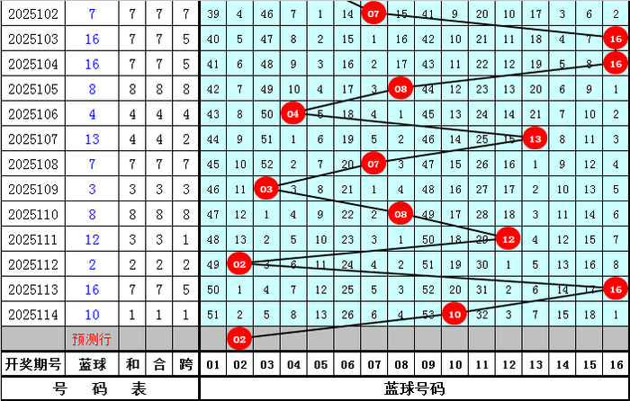 蓝球分析:第2025114期开出蓝球10,最近10期蓝球号码遗漏期数分别为:17期、10期、21期、5期、52期、4期、18期、13期、8期、20期,第2025115期蓝球注意01-16段出号,重点关注2路蓝球。第2025105期参考蓝球:02。