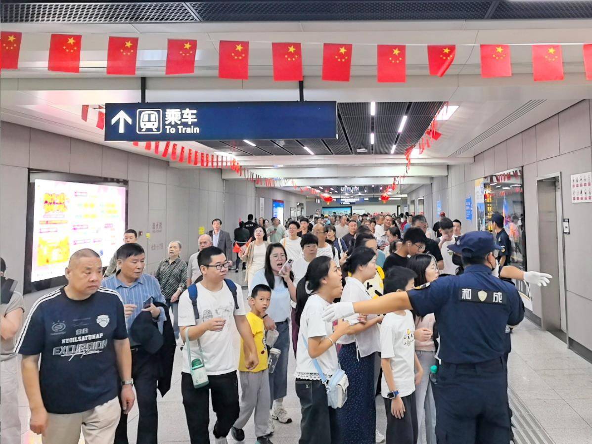 国庆期间,市区重要景点、商圈站附近地铁车站客流较为集中,相关车站已制定好预案,准备好充足物资和人员保障,全力保障八方游客、全市居民游玩出行途中安心、顺畅。
